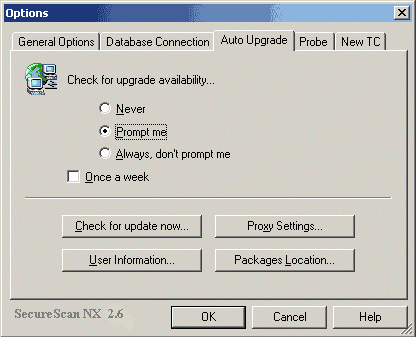 Remove check in "Upgrade package are ...." after upgrade and SecureScout NX will check the web site.