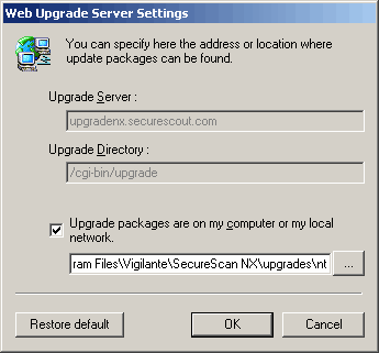 Select the path C:\Program File\SecureScoutSecureScoutNXUpgrades